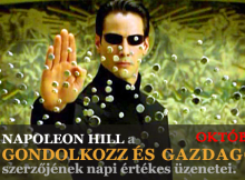 Az időd értelmes felhasználásáról beszél nekünk ma, október 23-án Napóleon Hill. Üdvözöllek, Lukács Ferenc vagyok, és akkor nézzük, hogy mi a mai üzenet: „Csak a gondolataid felett van